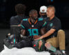 Tyreek Hill’s season for the Miami Dolphins potentially came to a sudden end on Monday night, when the standout wide receiver’s left knee became badly twisted shortly after he made a catch near the sideline.