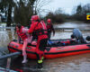 The first of a series of powerful storms dumped heavy rain and swelled rivers in the Pacific Northwest on Tuesday, closing roads and prompting high water rescues.