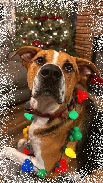 | Wyatt is a 120lb big baby who loves his Christmas sweaters and getting treats in his stocking! Wyatt is a Covid puppy, brought home on the day school ended- 3/13/2020 |